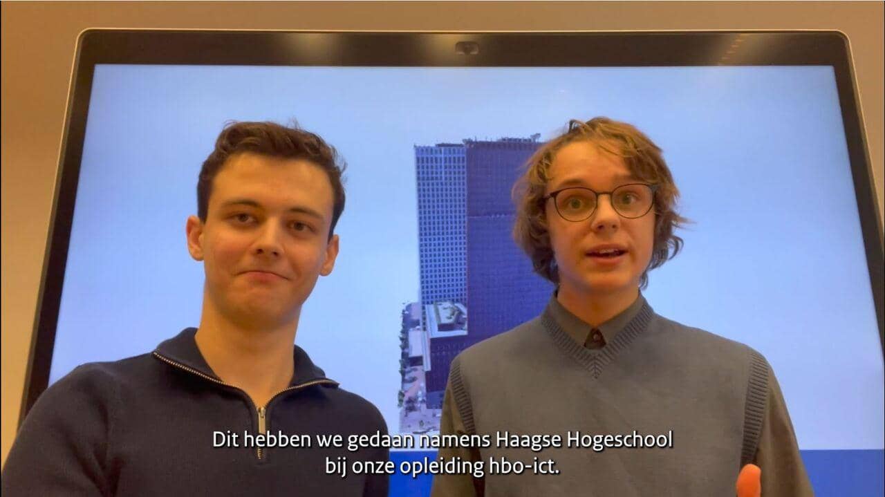 Felix en Emile zijn positief over de opdracht bij het ministerie van JenV. Felix: “Peter was heel duidelijk over wat hij wou, maar wilde ons niet een bepaalde kant op sturen. Dat gaf ons veel vrijheid bij het ontwerp en de uitwerking. Emile: “Daarnaast hebben we veel enthousiaste mensen gesproken en ontmoet, die echt blij waren met het resultaat. Het project eindigde met een Expo bij ons op school waar alle projectresultaten werden getoond. Peter en zijn team vonden dat heel tof om te zien.”