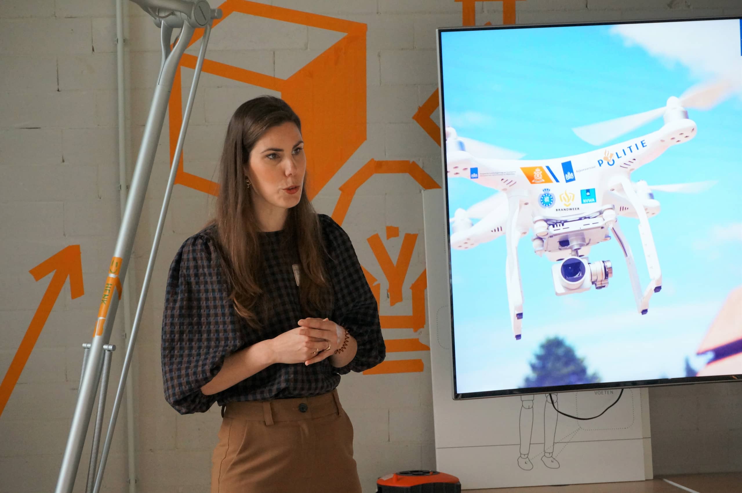 Innovatieconsultant Lieke van Schouwenburg verduidelijkt de vraag met een fictief praktijkvoorbeeld: een drone van het Ministerie van Defensie voert kustcontroles uit en ziet dat een schip olie lekt. Is het dan wenselijk dat deze data wordt gedeeld met de instanties die hierover gaan en zo ja, onder welke voorwaarden?