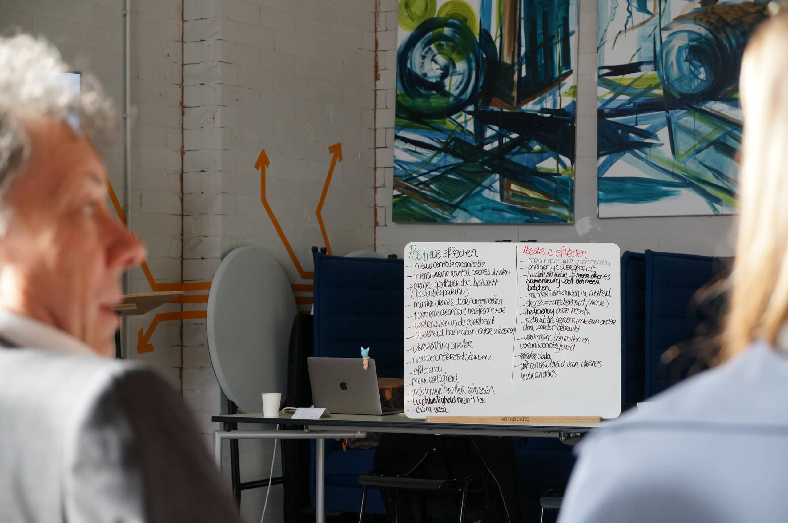 Stel: deze data wordt gedeeld, wat gebeurt er dan? Wat zijn de gevolgen, zowel positief als negatief? Al snel ontstaat er een mooi lijstje, dat de basis vormt voor de volgende stap: welke waarden vinden we belangrijk bij dit onderwerp? Er volgt een berg aan waarden, die allemaal belangrijk zijn. Maar als de experts écht moeten kiezen welke waarden belangrijk zijn bij het delen van data van drones, dan blijven veiligheid, proportionaliteit, vertrouwen, doelmatigheid en effectiviteit over.