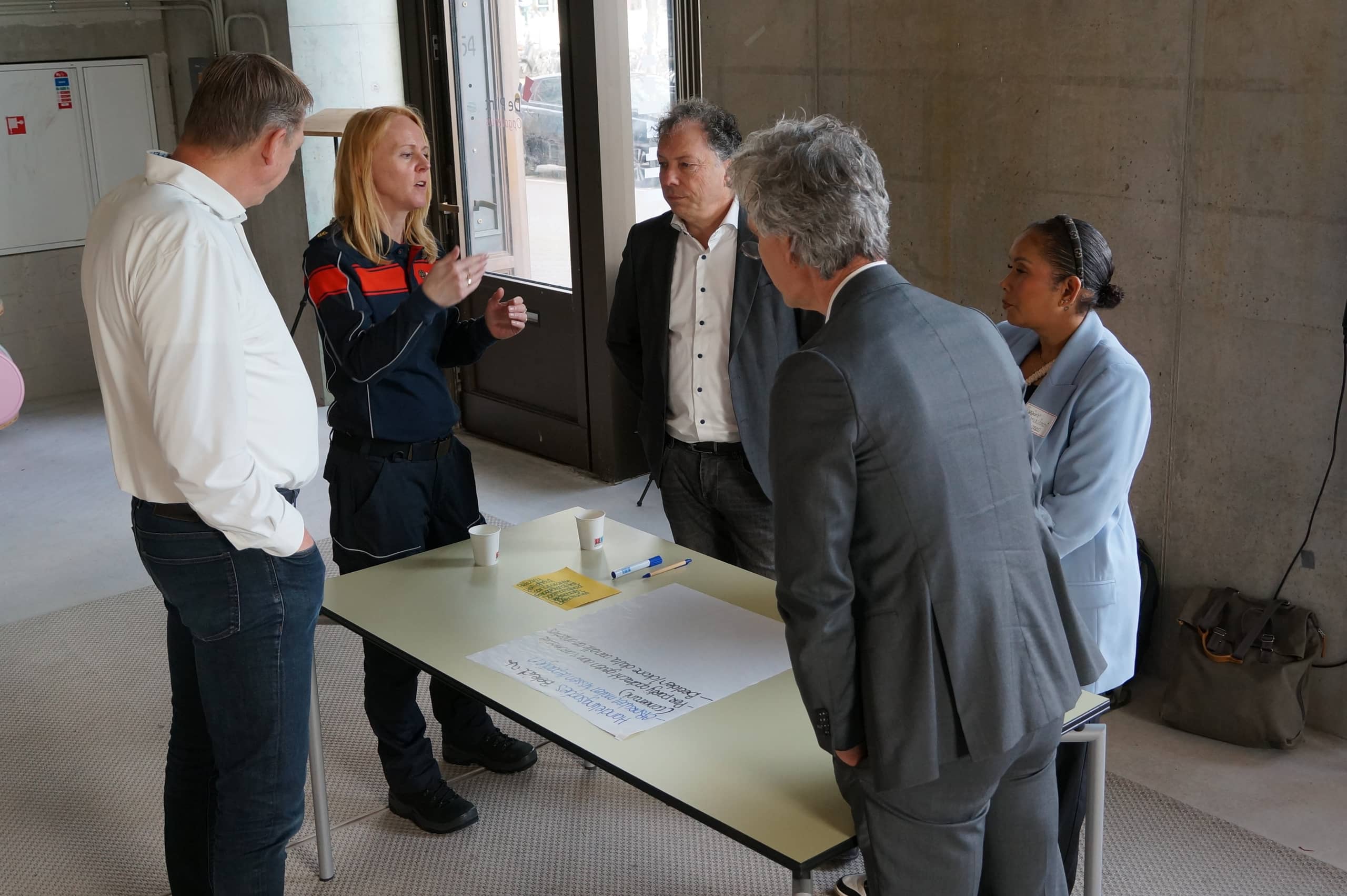 Met deze vijf waarden in het achterhoofd gaan de experts in drie groepen uiteen om te discussiëren over hoe datadeling van drones mogelijk gemaakt kan worden op het gebied van technologie, beleid en gedrag. Er ontstaan levendige discussies in de groepen, waardoor de gespreksleider de grootste moeite heeft om iedereen aan het eind weer bij elkaar te brengen.